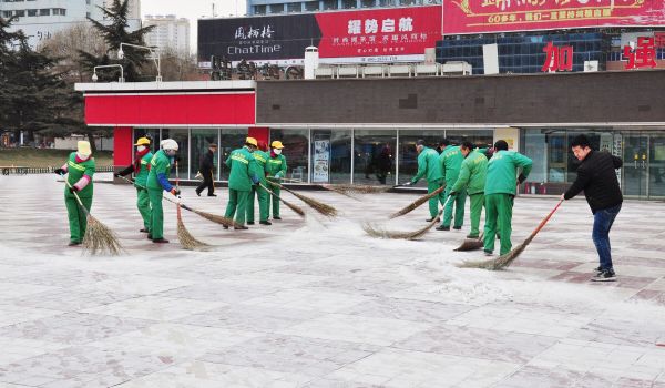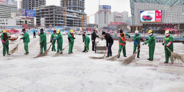 雖然雪下的不大,但氣溫驟降、風(fēng)雪交加還是給掃雪人員帶來(lái)了諸多不便,可這沒(méi)有影響各項(xiàng)目部團(tuán)隊(duì)清理積雪的熱情,在項(xiàng)目經(jīng)理的帶領(lǐng)下,各班組成員對(duì)自己主管的片區(qū)進(jìn)行認(rèn)真清掃,確保能夠在業(yè)主上班前讓各主干路內(nèi)的行人及車輛暢通無(wú)阻,把下雪帶來(lái)的影響降至最低。