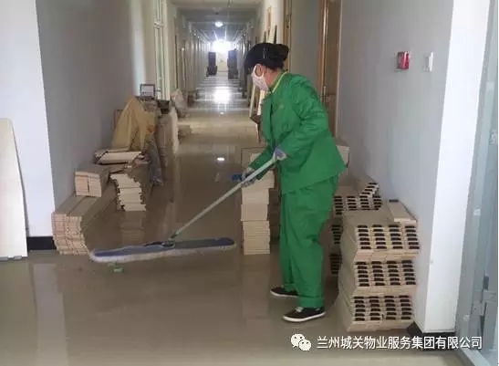 正在清理宿舍樓內(nèi)的地面衛(wèi)生