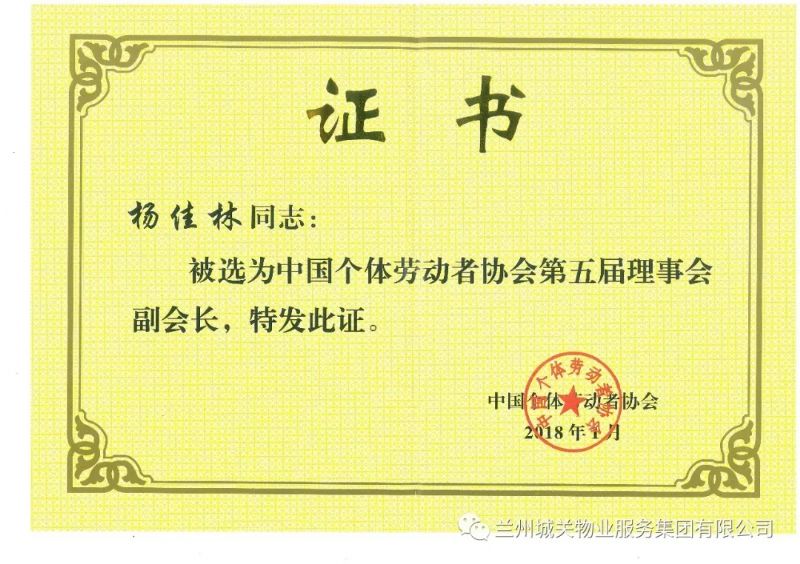 大會通過了上一屆理事會工作報(bào)告,選舉產(chǎn)生了中國個(gè)體勞動(dòng)者協(xié)會新一屆理事會,通過了《中國個(gè)體勞動(dòng)者協(xié)會章程(修訂草案)》,第五屆理事會第一次會議也同期召開。蘭州城關(guān)物業(yè)服務(wù)集團(tuán)有限公司CEO楊佳林作為甘肅省優(yōu)秀私營企業(yè)家代表,出席了本次會議,并當(dāng)選為中國個(gè)體勞動(dòng)者協(xié)會第五屆理事會副會長,于主席臺就坐。