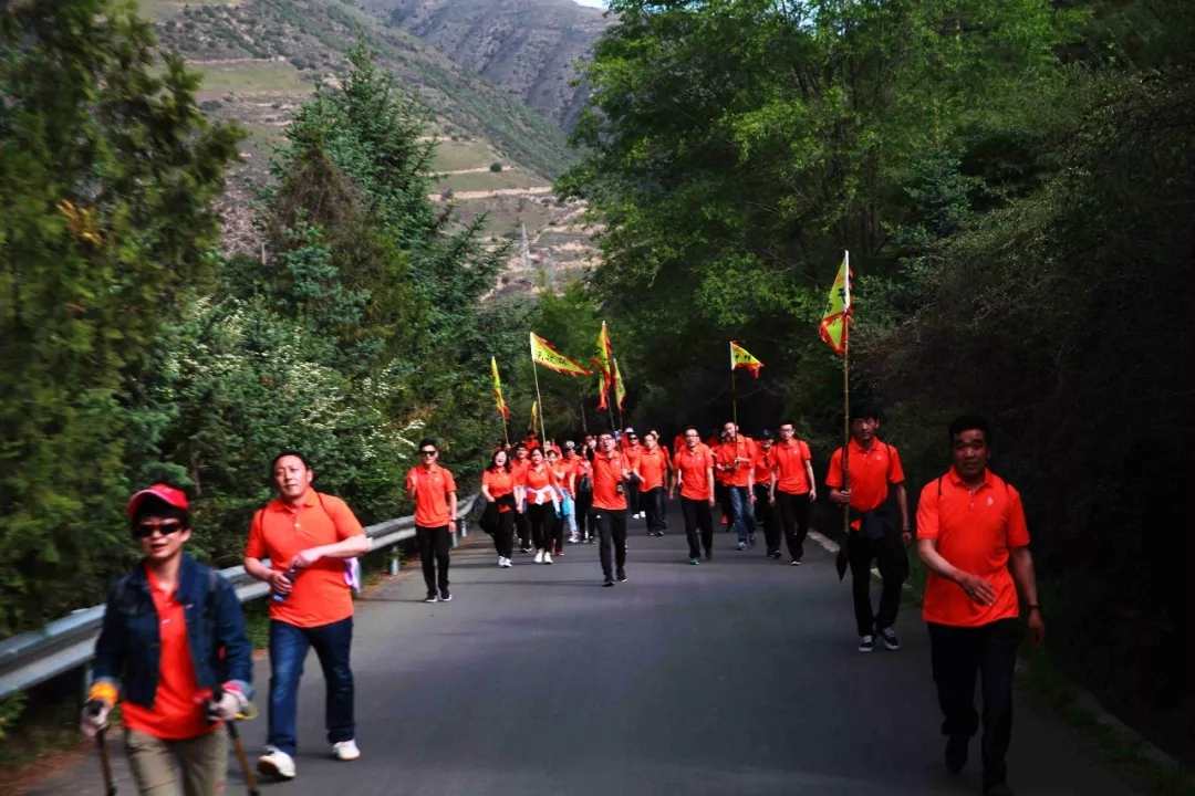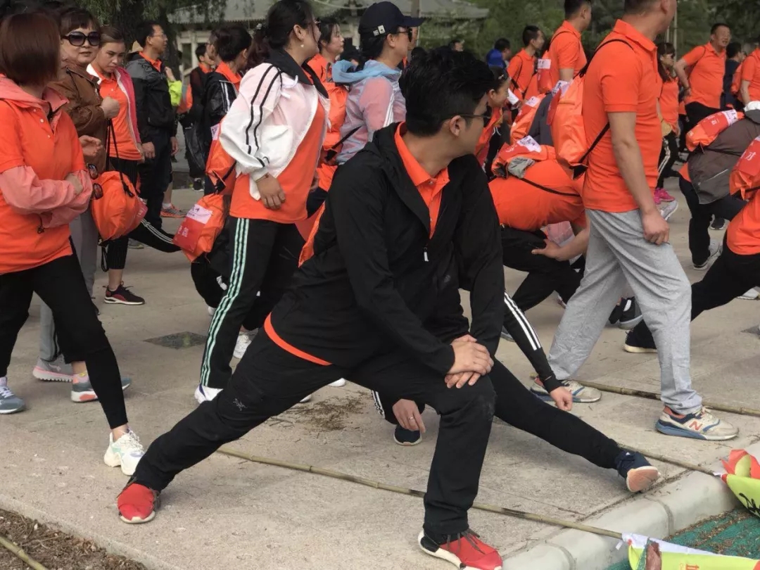 大家身著代表著企業(yè)的橙色上衣,肩扛代表各隊的旗幟,