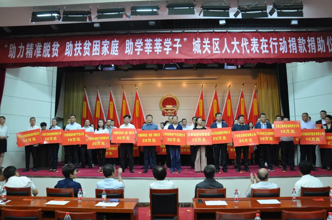 8月31日,蘭州市城關(guān)區(qū)人民代表大會召開“‘助力精準(zhǔn)脫貧 助扶貧困家庭 助學(xué)莘莘學(xué)子”城關(guān)區(qū)人大代表在行動捐款捐助儀式,城關(guān)區(qū)人大代表、蘭州民召物業(yè)管理集團(tuán)董事長楊民召,現(xiàn)場捐贈20萬元人民幣,并發(fā)表了講話。