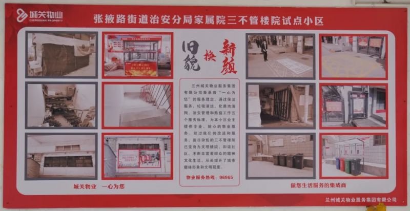 蘭州城關(guān)物業(yè)服務(wù)集團(tuán)有限公司自今年全面接管城關(guān)區(qū)老舊樓院以來,我們對老舊樓院進(jìn)行了大面積的改造,改善老舊樓院小區(qū)居民居住環(huán)境,實(shí)現(xiàn)了“三不管”樓院的華麗轉(zhuǎn)身。與此同時(shí),我們也引入了利民、便民、惠民的多元化服務(wù),讓業(yè)主們享受更優(yōu)質(zhì)、更便利的全方位服務(wù)。