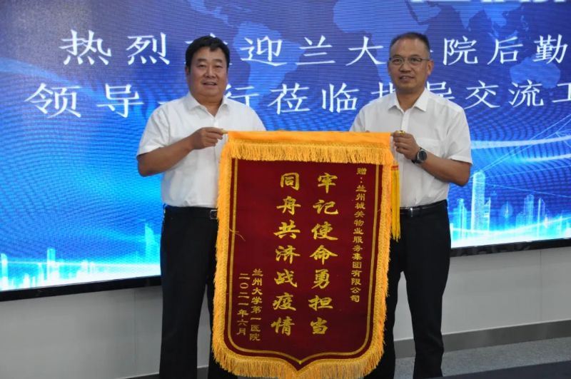 蘭州大學(xué)第一醫(yī)院后勤保障處陳處長(zhǎng)一行人專程來到蘭州城關(guān)物業(yè)服務(wù)集團(tuán)有限公司,將一面寫有“牢記使命勇?lián)?dāng) 同舟共濟(jì)戰(zhàn)疫情”的錦旗贈(zèng)予蘭州城關(guān)物業(yè)服務(wù)集團(tuán)有限公司,以此表達(dá)對(duì)城關(guān)物業(yè)的感謝和認(rèn)可。