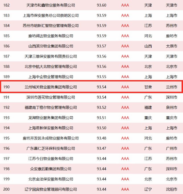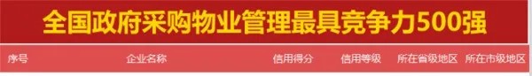 3月12日,政府采購(gòu)大數(shù)據(jù)研究院和政府采購(gòu)大數(shù)據(jù)網(wǎng)聯(lián)合發(fā)布了全國(guó)政府采購(gòu)物業(yè)管理服務(wù)最具競(jìng)爭(zhēng)力500強(qiáng),城關(guān)物業(yè)憑著過(guò)往良好的履約情況和風(fēng)險(xiǎn)管控能力成功入選,以93.54分的信用得分榮獲第190名,成為甘肅省唯一入選前500強(qiáng)的企業(yè)。