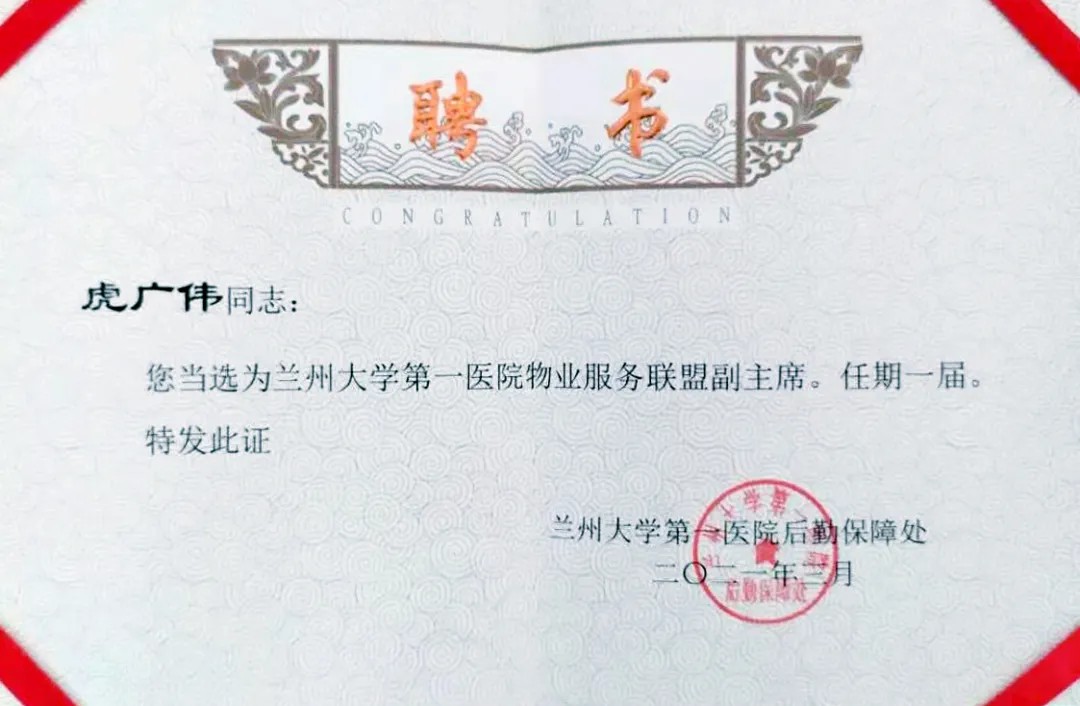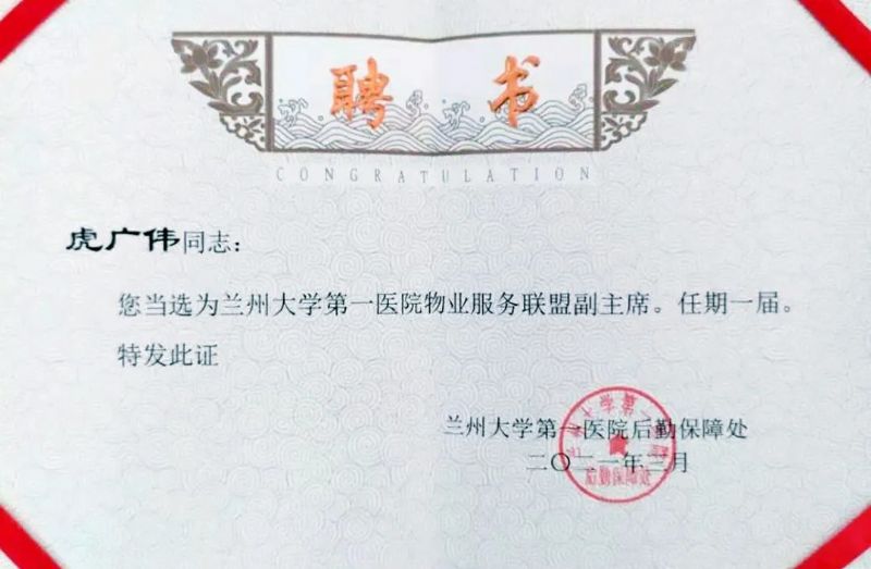 蘭州城關(guān)物業(yè)服務(wù)集團(tuán)有限公司蘭大一院項(xiàng)目經(jīng)理虎廣偉
