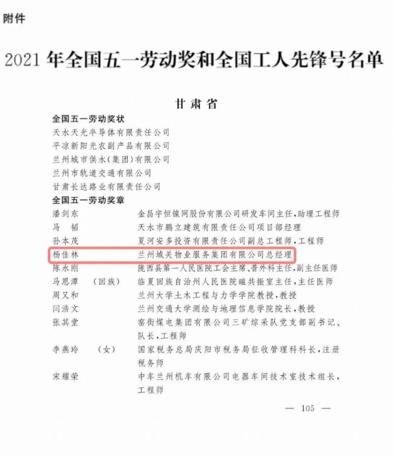作為一名年輕的企業(yè)家,楊佳林在企業(yè)中積極推動“黨工共建”,實現(xiàn)企業(yè)民主管理的制度化、常態(tài)化,在全面打贏脫貧攻堅戰(zhàn)的過程中,蘭州城關(guān)物業(yè)主動對接貧困山區(qū),充分挖掘社區(qū)消費潛力,建立消費扶貧產(chǎn)品的“綠色通道”,以實際行動助力鄉(xiāng)村振興。正是因為楊佳林對社會和時代的責(zé)任感,在他的帶領(lǐng)下,蘭州城關(guān)物業(yè)先后獲得“全國五一勞動獎狀”“全省非公經(jīng)濟黨建示范點”等300余項榮譽,楊佳林本人也相繼獲得了 “甘肅省五一勞動獎?wù)隆、“甘肅物業(yè)行業(yè)貢獻獎”、“甘肅省技術(shù)標兵”、全省百萬職工職業(yè)技能素質(zhì)提升活動“優(yōu)秀組織者”、蘭州市首批“金城創(chuàng)新創(chuàng)業(yè)非公企業(yè)家”等多項榮譽。