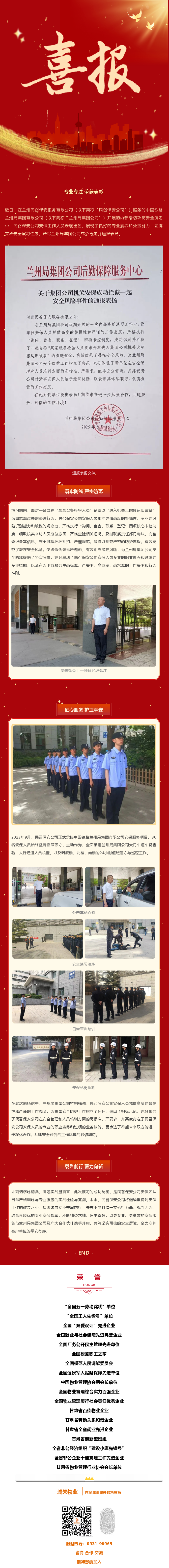 【喜訊】蘭州民召保安服務(wù)有限公司獲中國(guó)鐵路蘭州局集團(tuán)有限公司通報(bào)表?yè)P(yáng)